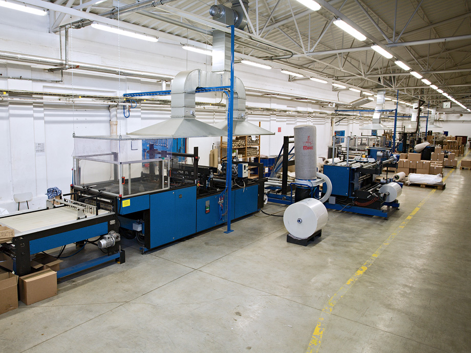 - 4 dokončovací linky na výrobu sáčků, pytlů a perforaci (instalace 2005, 2007)